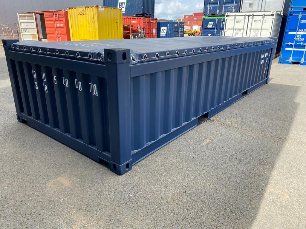 O tamanho deste contentor de meia altura é tal que pode ser carregado eficientemente com uma máquina pequena. Bij de container é um dekzeil robusto inbegrepen om de lading te beschermen (ou om de container mee af te dekken na gebruik).