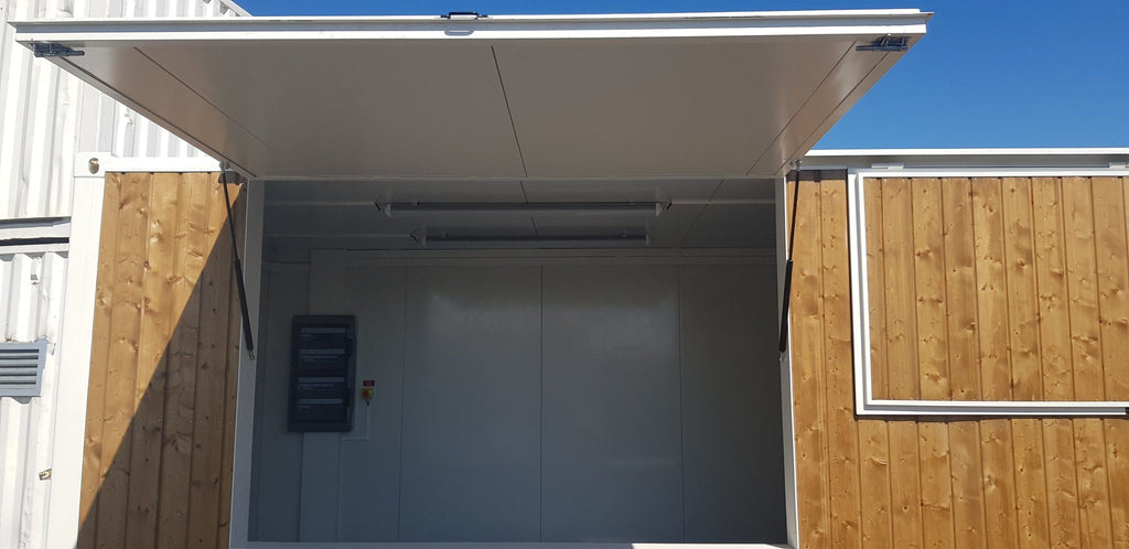 Opções incluídas: Proteção com cadeado + Revestimento completo em madeira + 1 porta adicional + 1 porta de serviço + Tratamento de pavimento + Pacote elétrico completo (220v / 380v) com certificação SOCOTEC + Paredes divisórias + Isolamento completo + Reserva para drenagem de água + Reserva para exaustor.